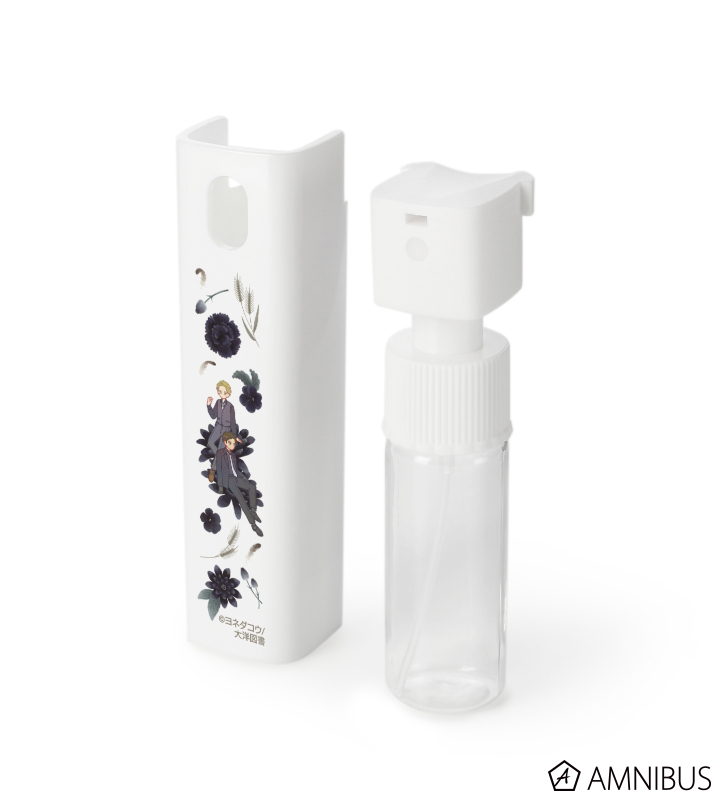 矢代と百目鬼のイラストをボタニカルデザインに落とし込んで繊細なタッチで新たに描き起こし、ケース付きのスプレーボトルに仕上げました。