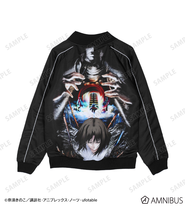表は第五章「矛盾螺旋」のキービジュアル、裏は終章「空の境界」のキービジュアルのデザインのスカジャンに仕上げました。