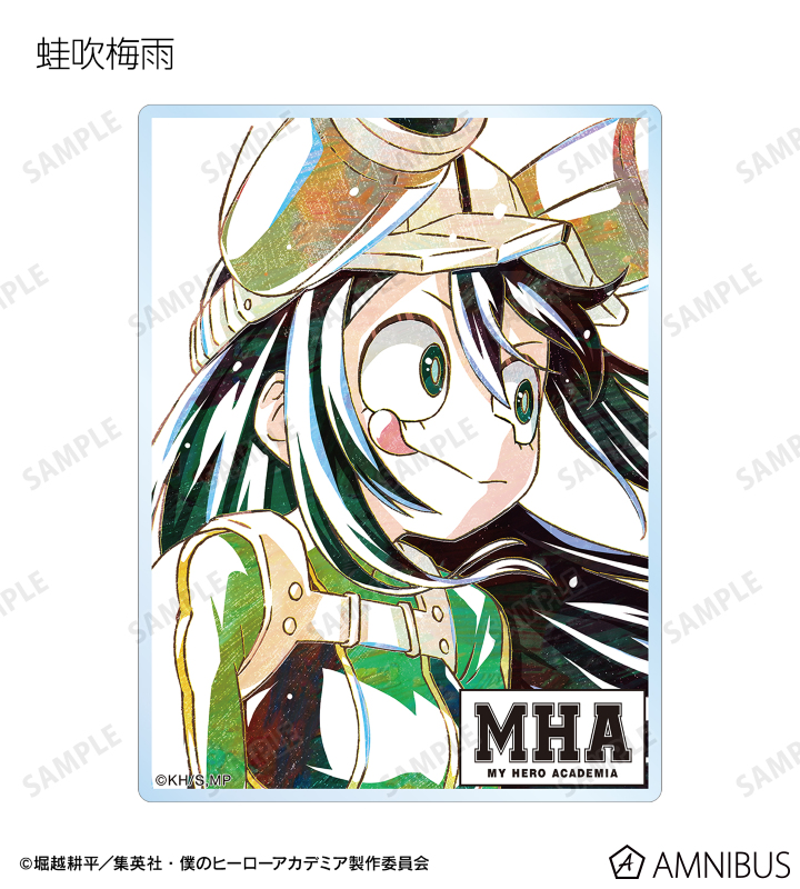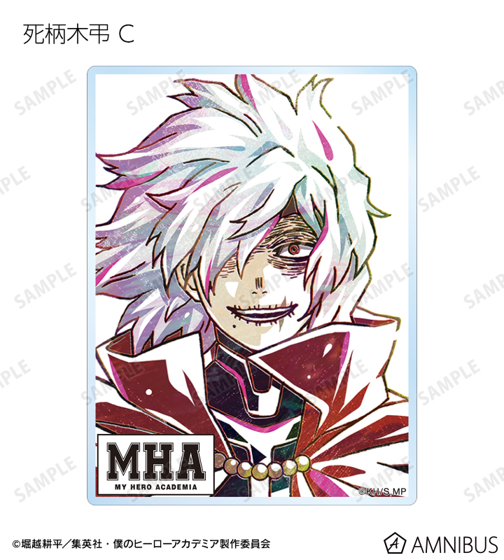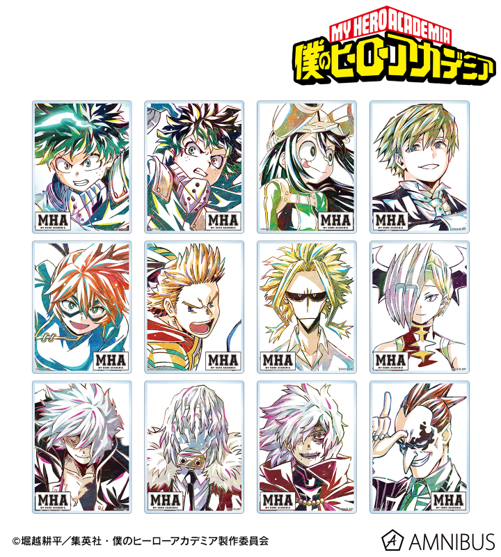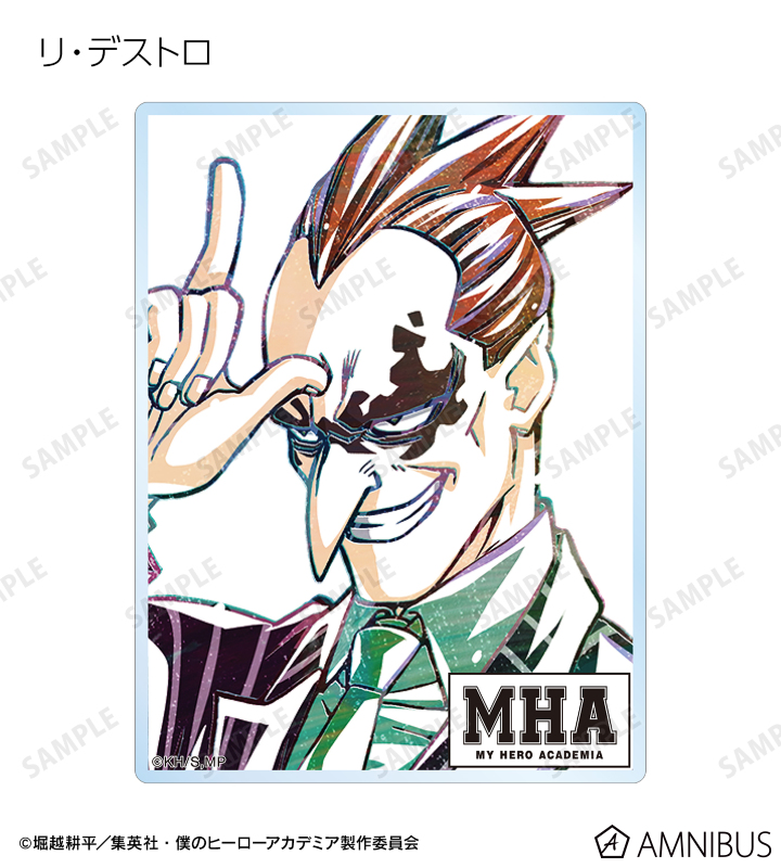 緑谷出久、蛙吹梅雨、物間寧人、拳藤一佳、通形ミリオ、オールマイト、リューキュウ、死柄木弔、リ・デストロのビジュアルを新たなタッチで魅力的に表現し、アクリルカードに仕上げました。