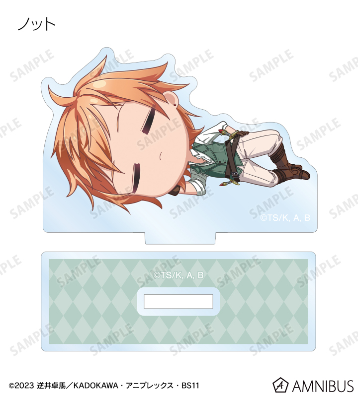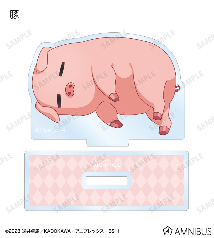 豚、ジェス、セレス、ノット、ブレースがころんと寝ているちびキャラを新たに描き起こし、アクリルスタンドに仕上げました。