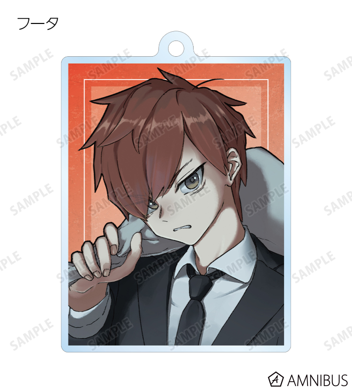 エスとジャッカロープ、ハルカ、ユノ、フータ、ムウ、シドウ、マヒル、カズイ、アマネ、ミコト、コトコの描き下ろしイラストをアクリルキーホルダーに仕上げました。