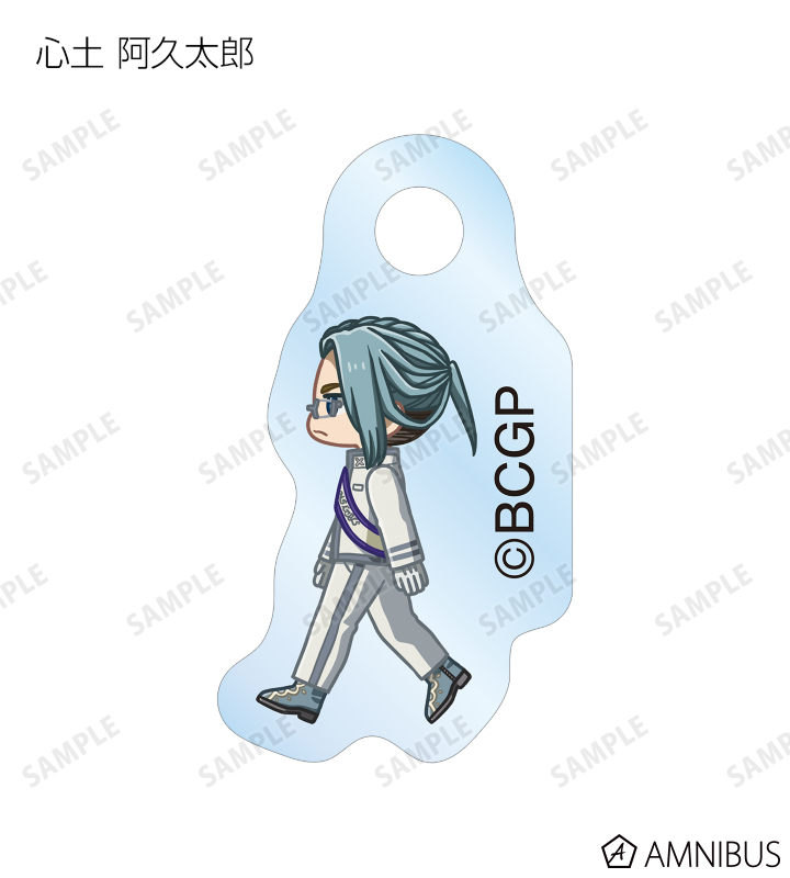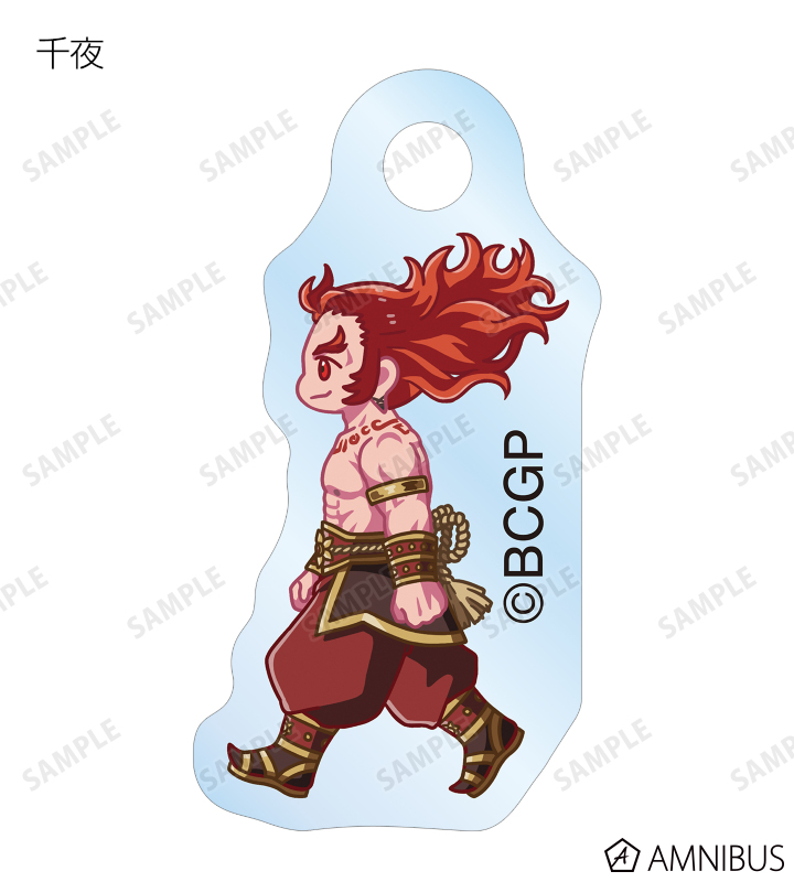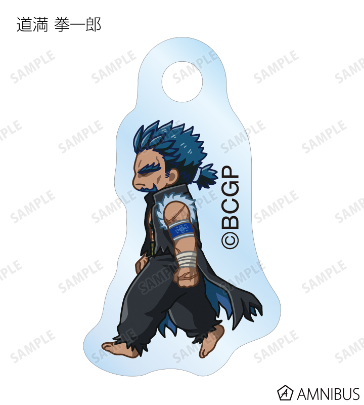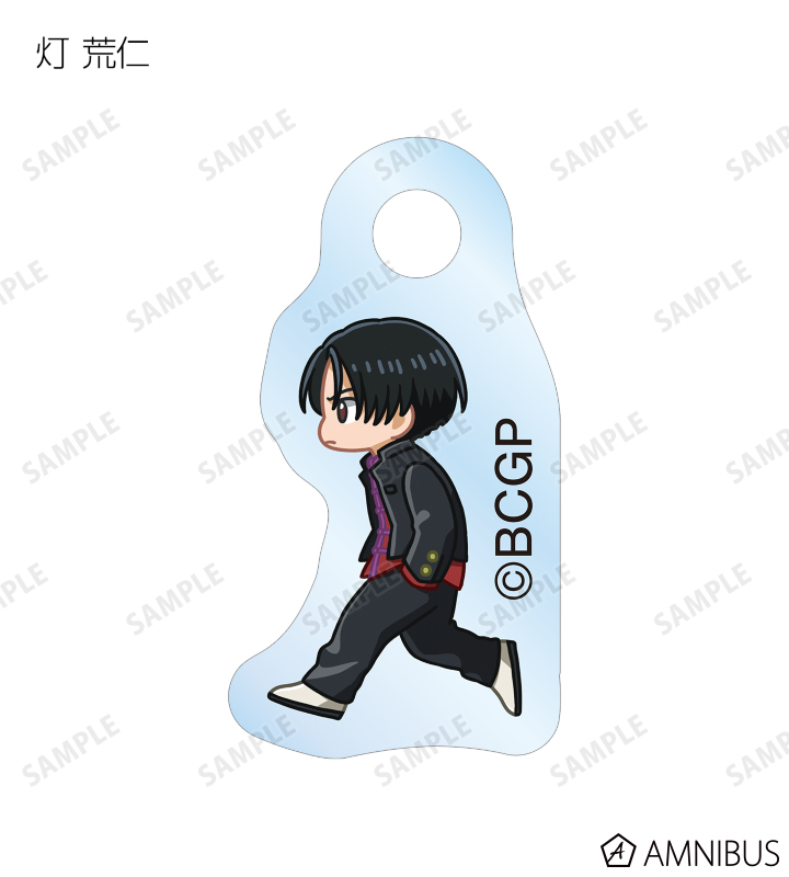 灯 荒仁、千夜、浅観音 真宝、道満 拳一郎、座布 翔、魁 駒男、神 まほろ、神 摩利人、大英 王太、蛇走 流、刃暮 達兎、心土 阿久太郎が歩いているちびキャラを新たに描き起こし、ダイカットのアクリルミニチャームに仕上げました。