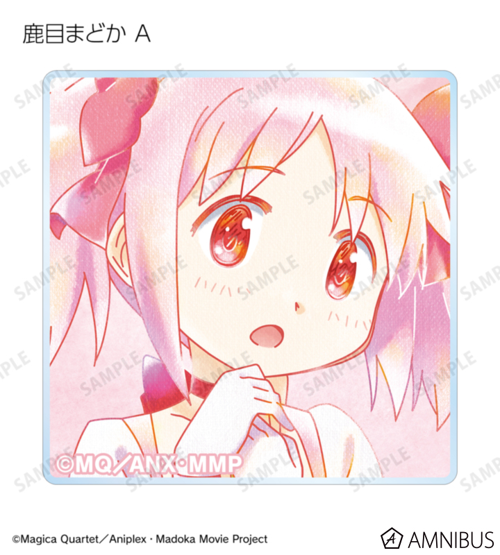 鹿目まどか、暁美ほむら、巴マミ、美樹さやか、佐倉杏子のイラストを水彩調のテイストで表現し、アクリルタイルに仕上げました。