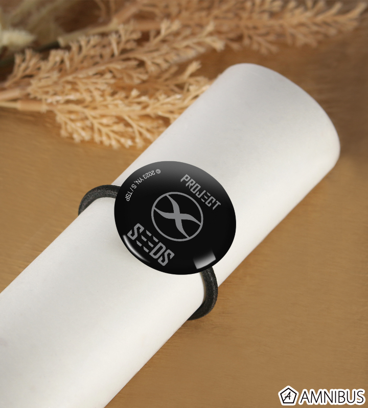 プロジェクトSEEDSのロゴをメインにガラスヘアゴムに仕上げました。