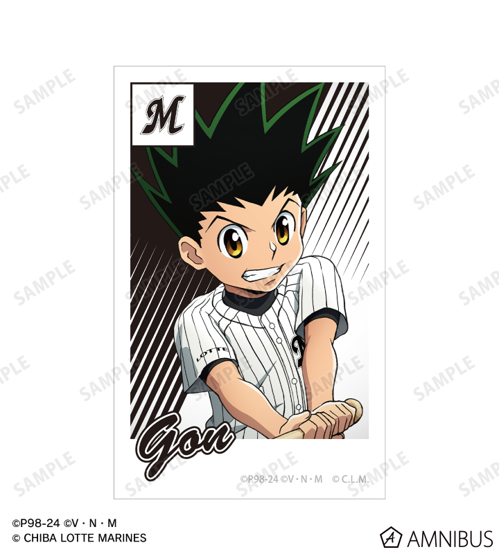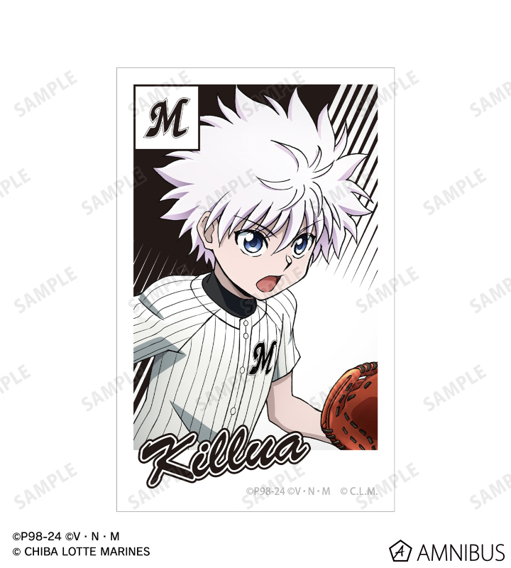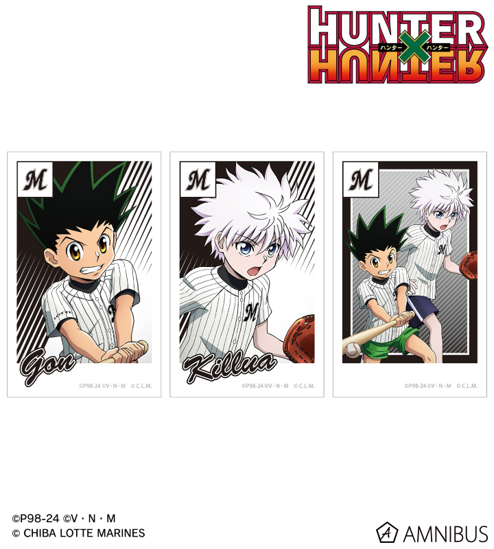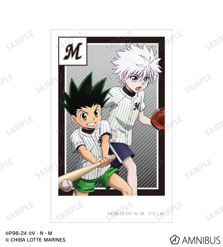 ゴン、キルアの描き下ろしイラストと球団のロゴをチームカラーに合わせたインスタントフィルム風のイラストカードに仕上げました。