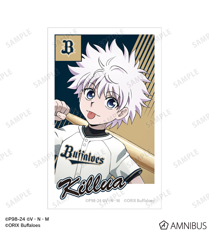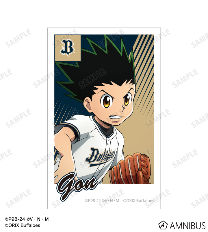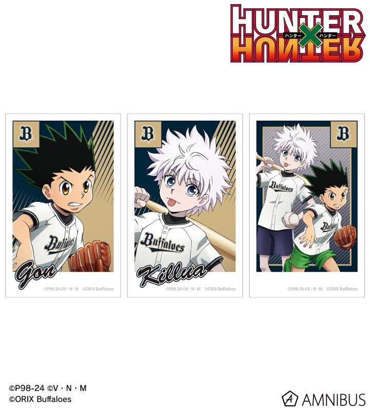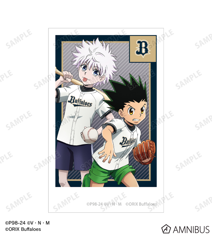 ゴン、キルアの描き下ろしイラストと球団のロゴをチームカラーに合わせたインスタントフィルム風のイラストカードに仕上げました。