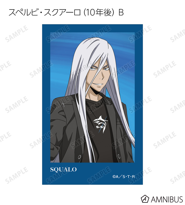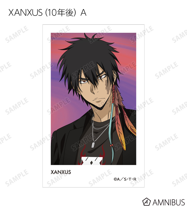 沢田 綱吉、リボーン、獄寺 隼人、山本 武、雲雀 恭弥、六道 骸(10年後)、XANXUS(10年後)、スペルビ・スクアーロ(10年後)、ベルフェゴール(10年後)、フランの描き下ろしイラストをインスタントカメラ風イラストカード2枚セットに仕上げました。