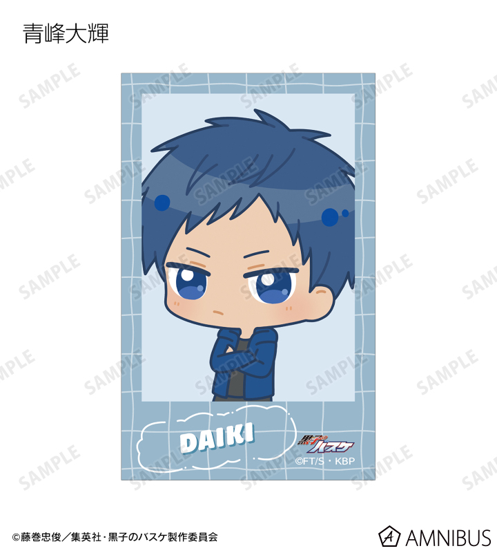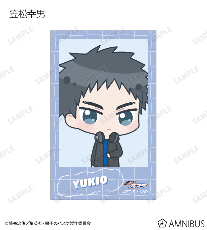 黒子テツヤ、火神大我、黄瀬涼太、笠松幸男、緑間真太郎、高尾和成、青峰大輝、今吉翔一、紫原 敦、氷室辰也、赤司征十郎、黛 千尋のちびキャライラストをインスタントフィルム風のデザインに仕上げました。