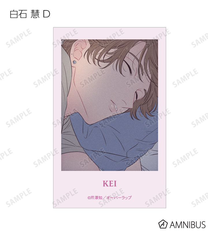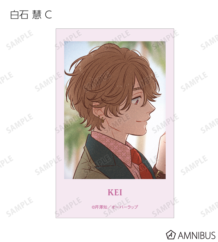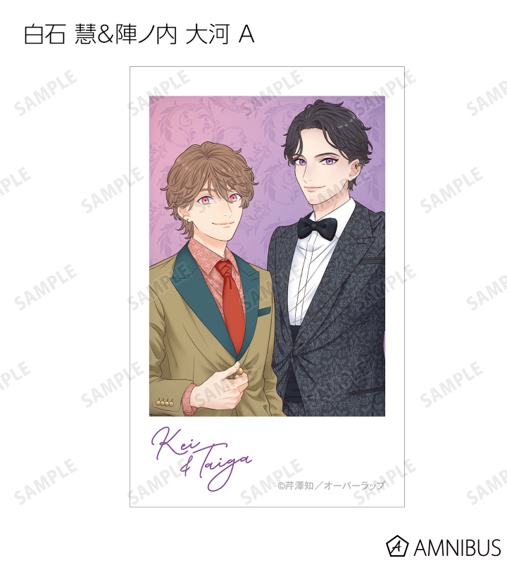 芹澤 知先生描き下ろしイラストの白石 慧、陣ノ内 大河、原作コマイラストをインスタントカメラ風のイラストカードに仕上げました。