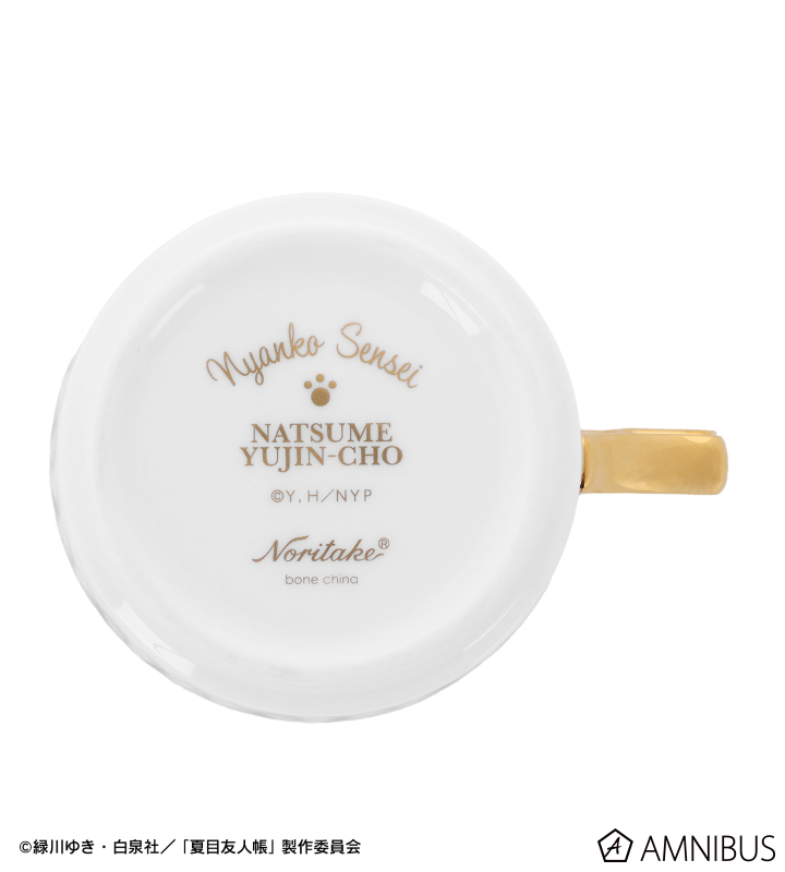 カップ裏、ソーサー裏にはノリタケロゴと、NATSUME YUJIN-CHO、Nyanko Senseiの文字と、ニャンコ先生の肉球を印字しております。