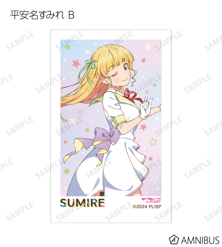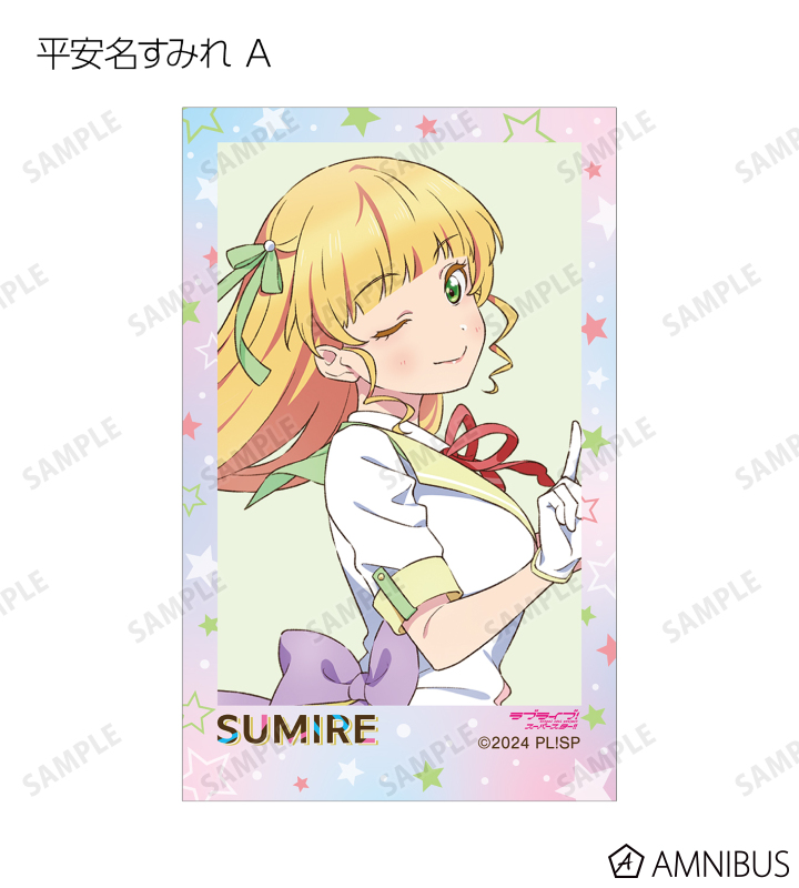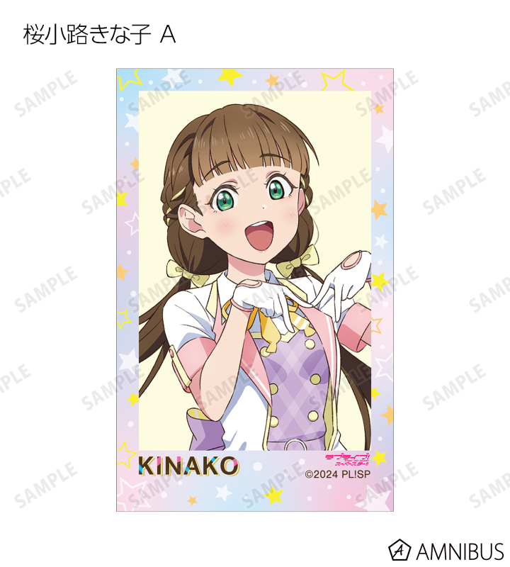 澁谷かのん、唐 可可、嵐 千砂都、平安名すみれ、葉月 恋、桜小路きな子、米女メイ、若菜四季、鬼塚夏美、ウィーン・マルガレーテ、鬼塚冬毬の描き下ろしイラストををインスタントフィルム風のイラストカード2枚セットに仕上げました。