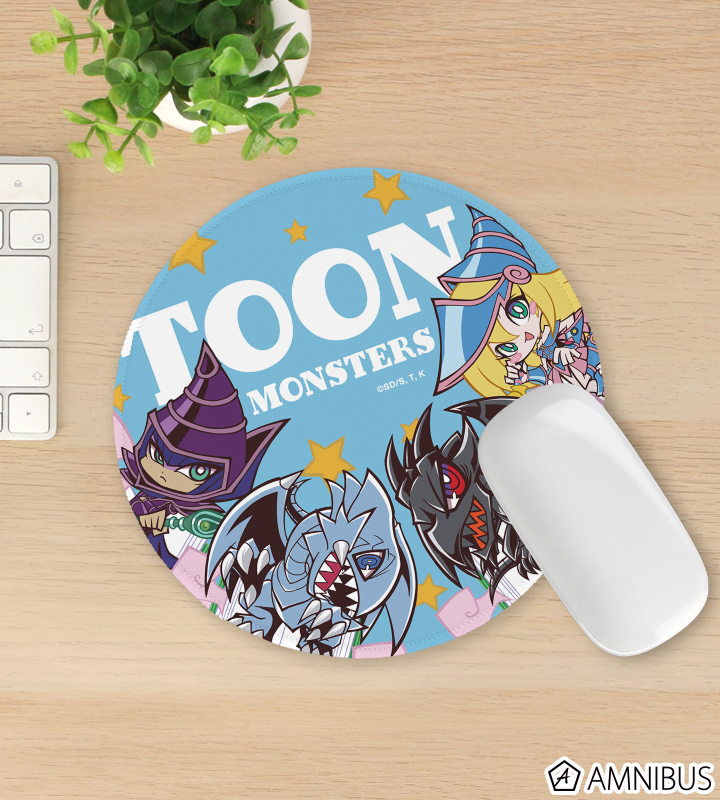 青眼の白龍、ブラック・マジシャン、ブラック・マジシャン・ガール、真紅眼の黒竜がトゥーンモンスターになったイメージのイラストをマウスパッドに仕上げました。