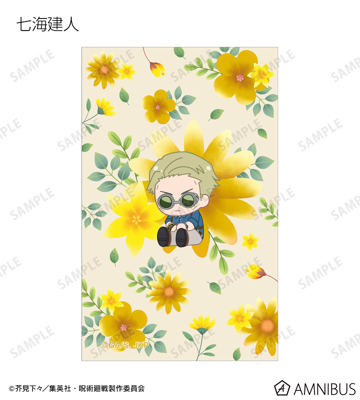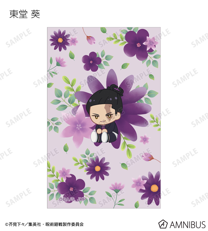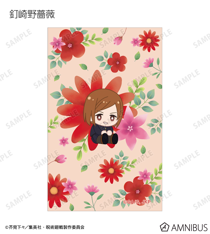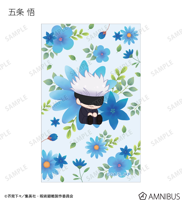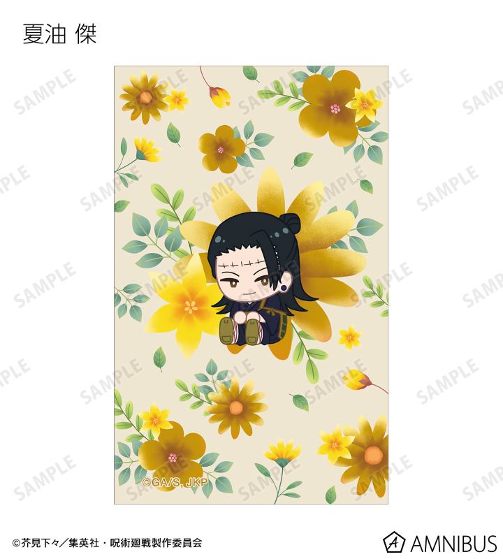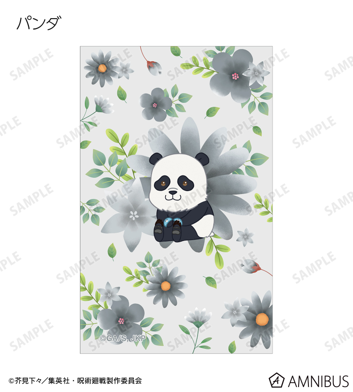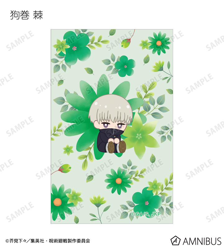 虎杖悠仁、伏黒 恵、釘崎野薔薇、禪院真希、狗巻 棘、パンダ、東堂 葵、七海建人、五条 悟、夏油 傑、真人、脹相のイラストをボタニカルデザインに落とし込んで繊細なタッチで新たに描き起こし、イラストカードに仕上げました。