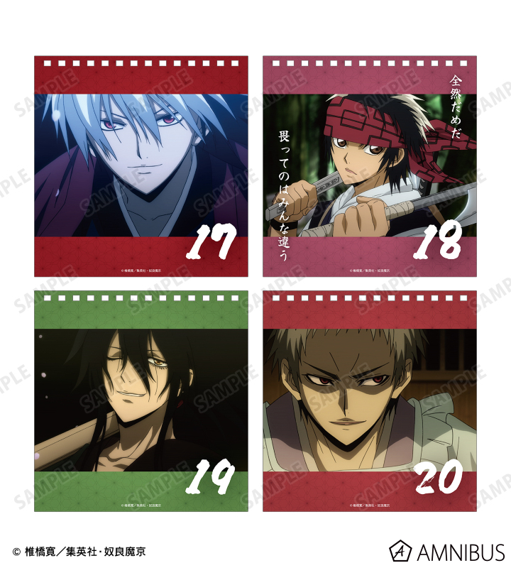 奴良リクオ、ぬらりひょん、奴良鯉伴、氷麗、黒田坊、首無、鴆、イタク、花開院ゆら、花開院竜二、羽衣狐の印象的なシーン、作中内の台詞を日替わりでお楽しみいただける日めくりカレンダーに仕上げました。