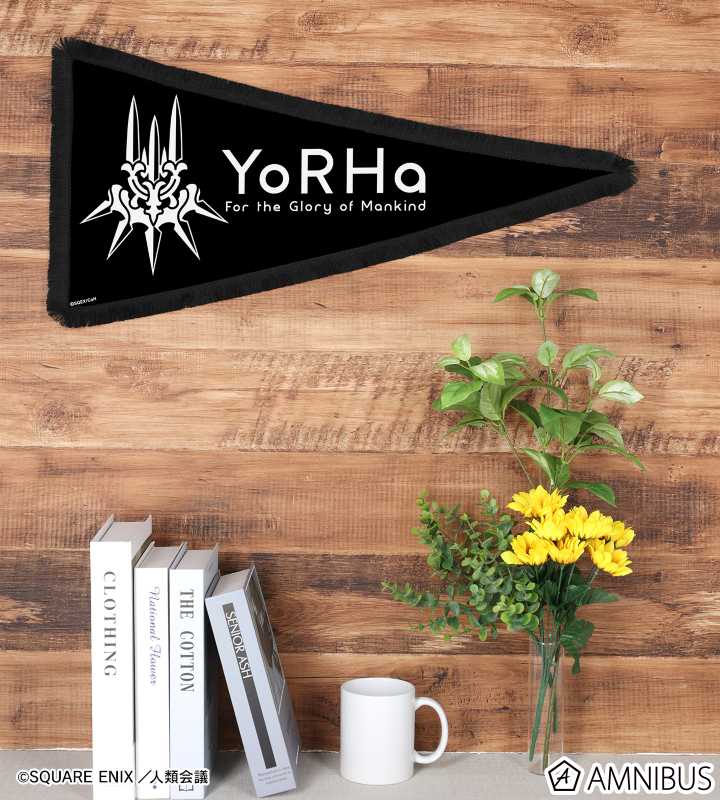 フリンジ付きのBIGペナントに、2Bと9Sが所属するヨルハ部隊のエンブレムをデザインしました。
