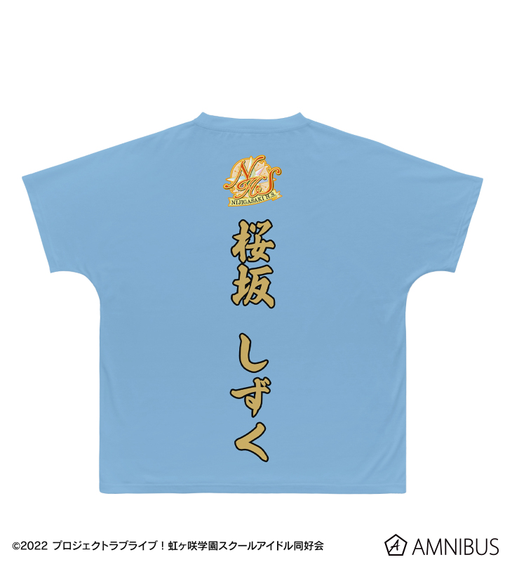 桜坂しずくの描き下ろしイラスト、メンバーの名前、校章をフルグラフィックTシャツに仕上げました。