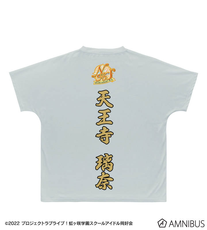 天王寺璃奈の描き下ろしイラスト、メンバーの名前、校章をフルグラフィックTシャツに仕上げました。
