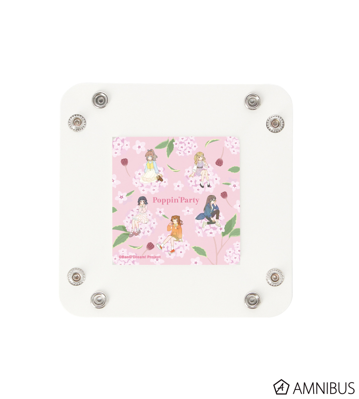 戸山 香澄、花園 たえ、牛込 りみ、山吹 沙綾、市ヶ谷 有咲のイラストをボタニカルデザインに落とし込んで繊細なタッチで新たに描き起こし、PUレザーマルチトレーに仕上げました。