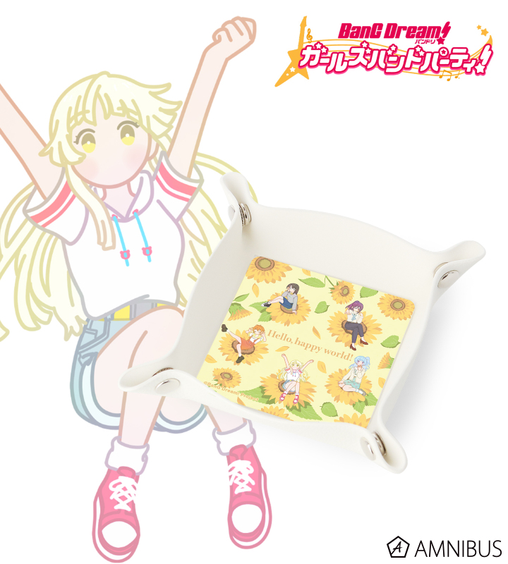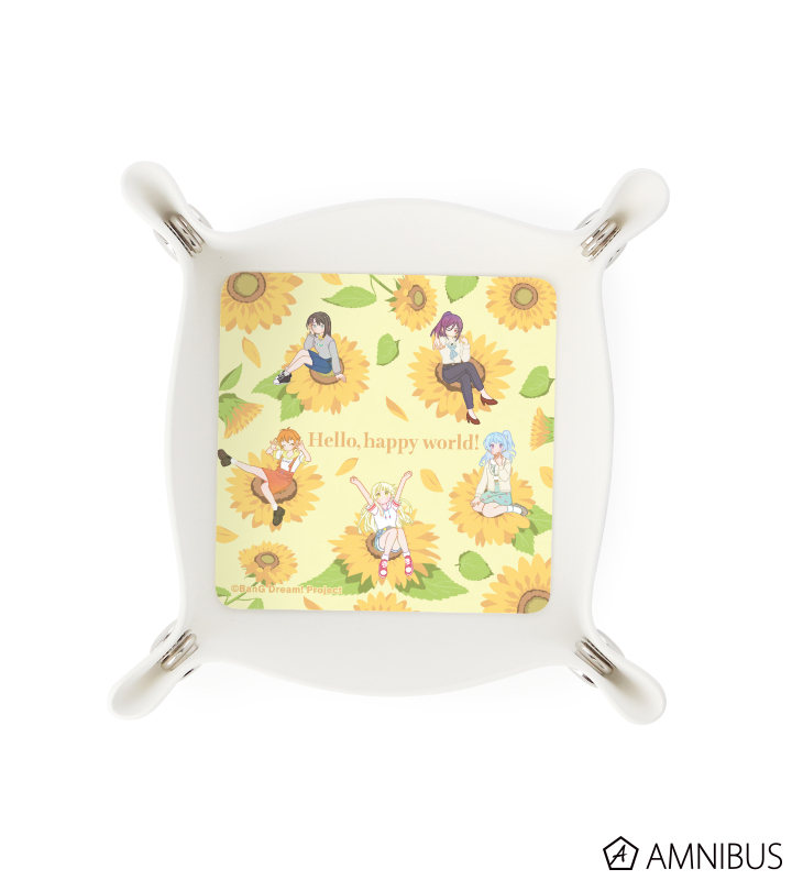 弦巻 こころ、瀬田 薫、北沢 はぐみ、松原 花音、奥沢 美咲のイラストをボタニカルデザインに落とし込んで繊細なタッチで新たに描き起こし、PUレザーマルチトレーに仕上げました。