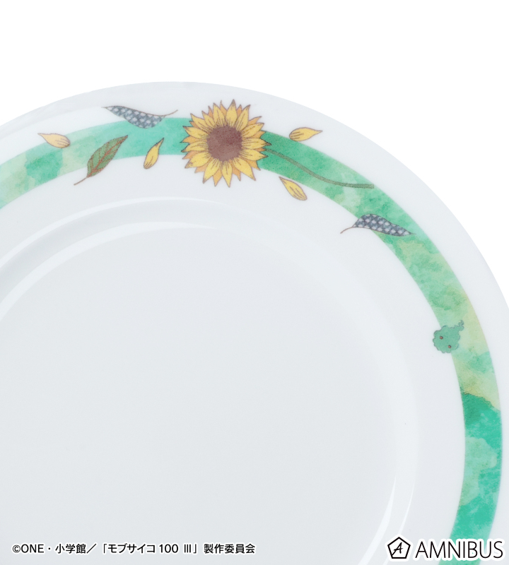 影山茂夫をイメージした、最終話に登場する花とキャラカラーの緑色が印象的でカジュアルなプレートです。