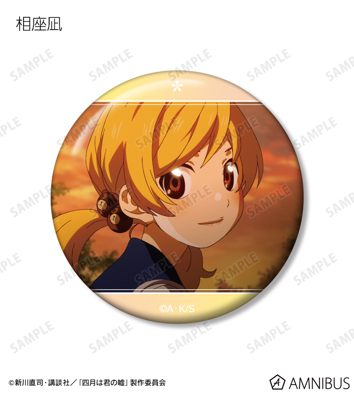 有馬公生、宮園かをり、澤部椿、渡亮太、相座武士、井川絵見、相座凪の印象的なシーンを缶バッジに仕上げました。