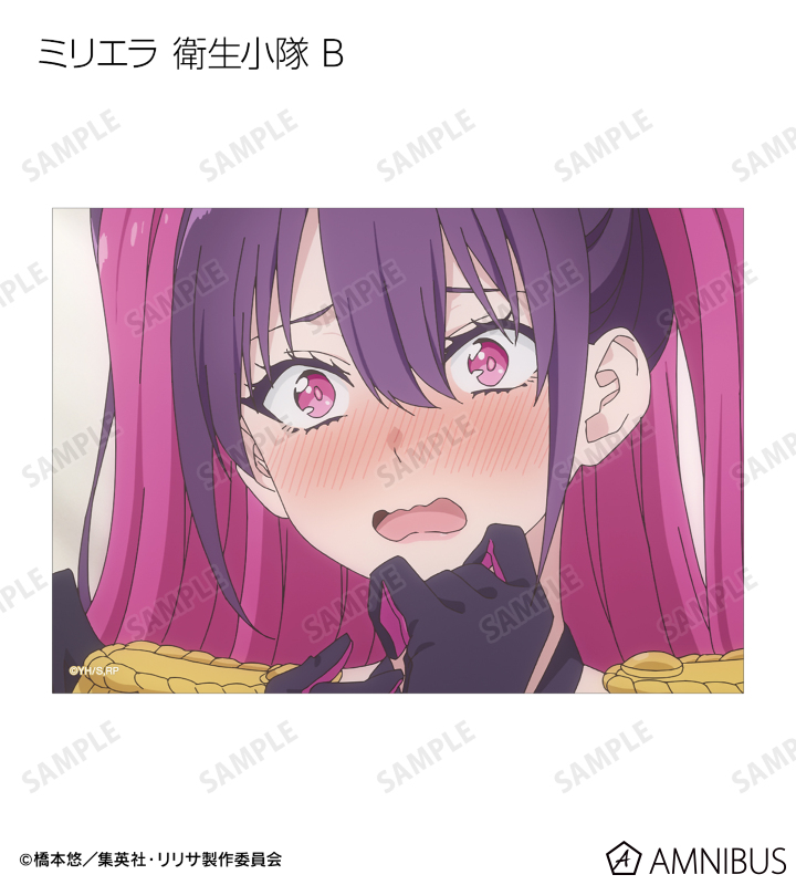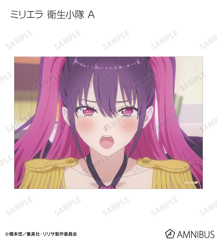 天乃リリサ、橘美花莉、ノノア、喜咲アリアの描き下ろしイラスト、羽生まゆり、753♡、リリエル 天使衣装、ミリエラ 衛生小隊、ラスタロッテ 幻の衣装、イコラの印象的なシーンをブロマイド2枚セットに仕上げました。