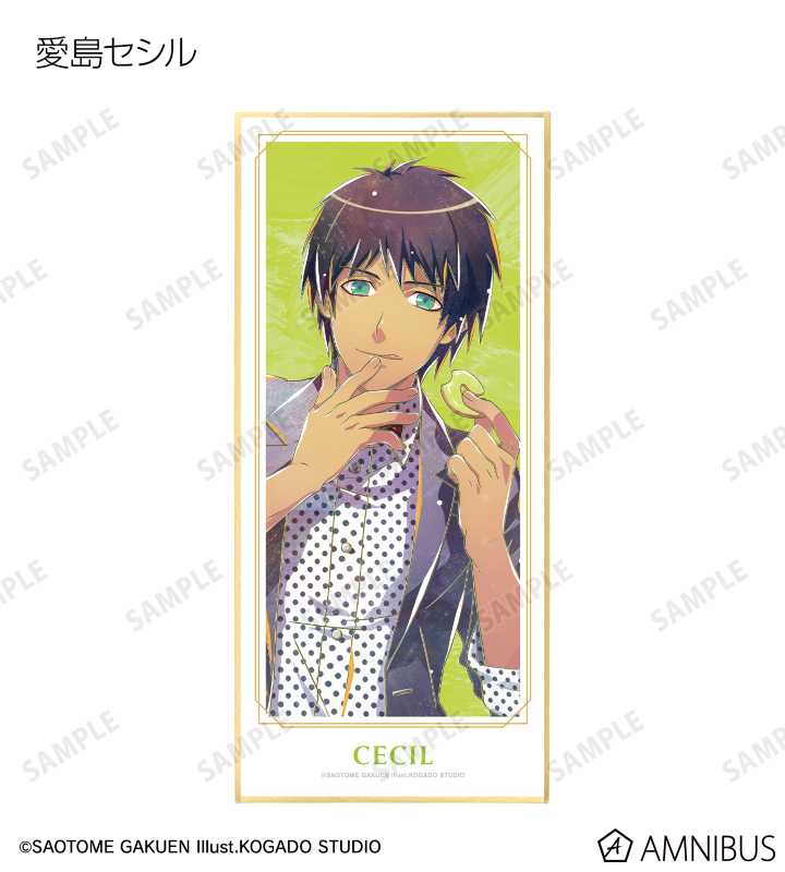 一十木音也、聖川真斗、四ノ宮那月、一ノ瀬トキヤ、神宮寺レン、来栖 翔、愛島セシル、寿 嶺二、黒崎蘭丸、美風 藍、カミュのビジュアルを新たなタッチで魅力的に表現し、スタンド付きの色紙に仕上げました。