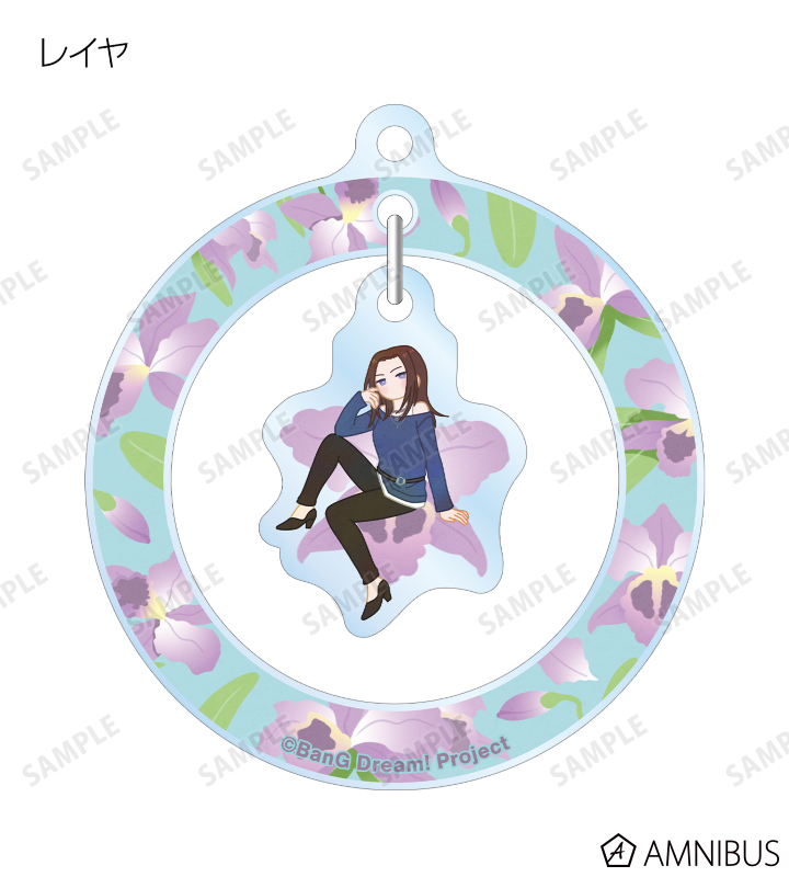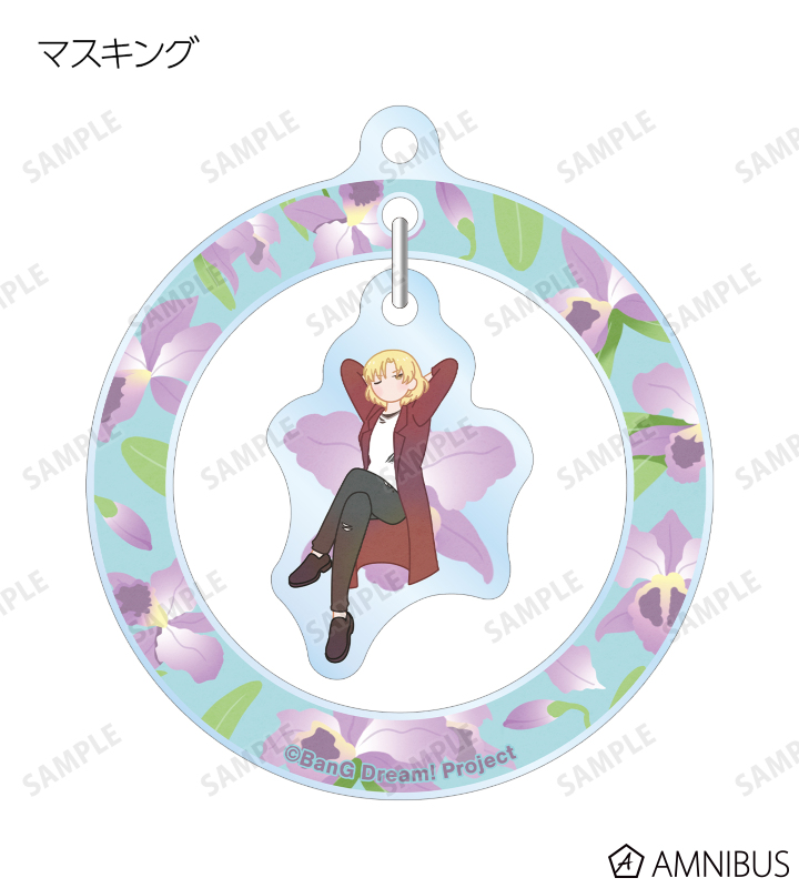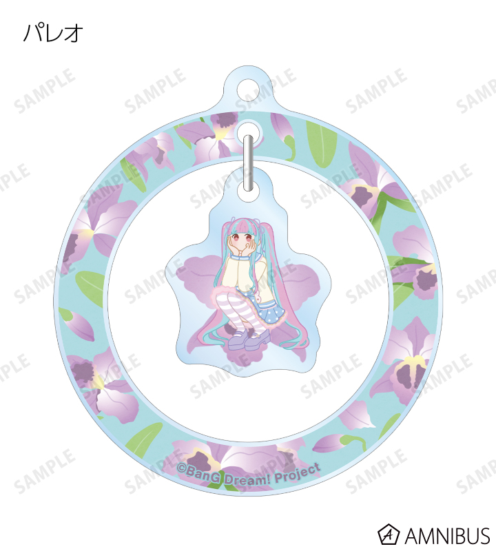 美竹 蘭、青葉 モカ、上原 ひまり、宇田川 巴、羽沢 つぐみ、レイヤ、ロック、マスキング、パレオ、チュチュのイラストをボタニカルデザインに落とし込んで繊細なタッチで新たに描き起こし、ゆらゆら動くアクリルキーホルダーに仕上げました。