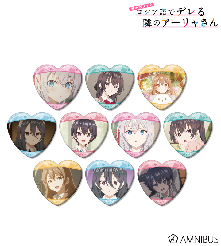 TVアニメ「時々ボソッとロシア語でデレる隣のアーリャさん」より、トレーディングハート型缶バッジの登場です。