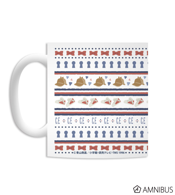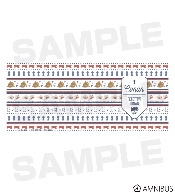 江戸川コナンからイメージした蝶ネクタイ型変声機やキック力増強シューズなどのモチーフを模様のようにレイアウトしたデザインに仕上げました。