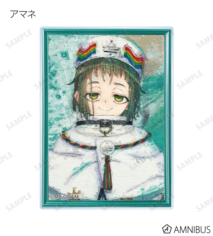 エス、ハルカ、ユノ、フータ、ムウ、シドウ、マヒル、カズイ、アマネ、ミコト、コトコのイラストを新たなタッチで魅力的に表現し、アクリルカードに仕上げました。