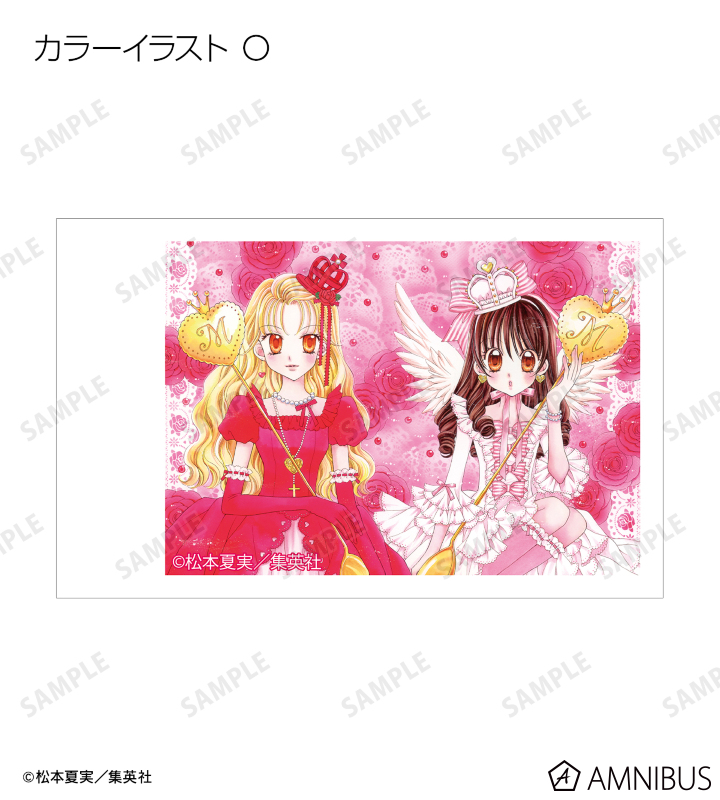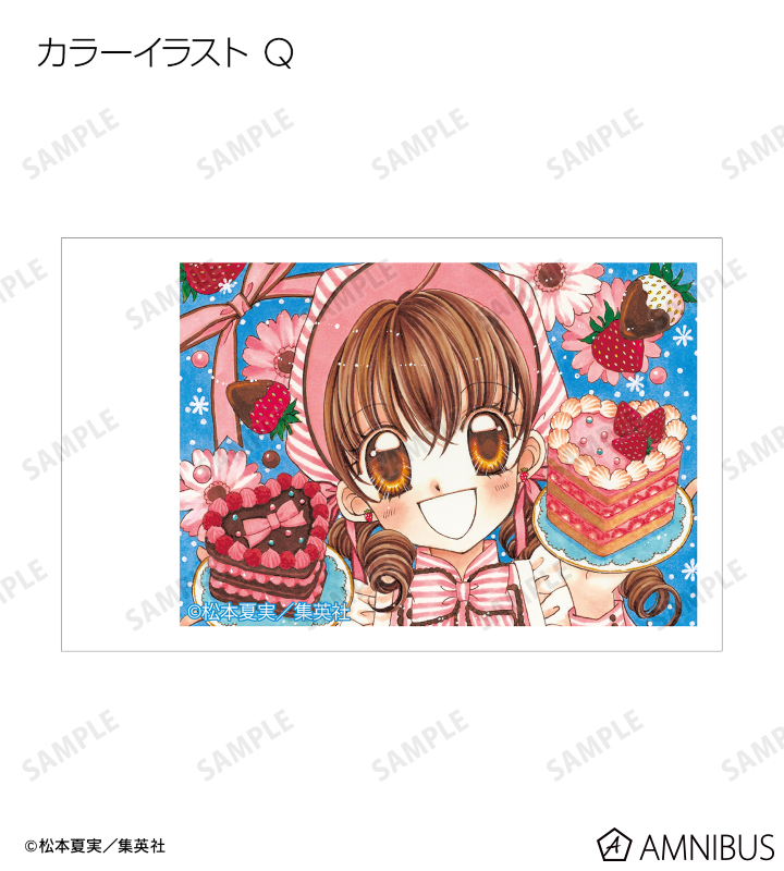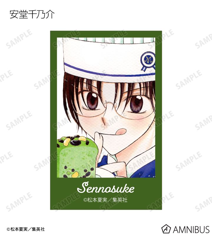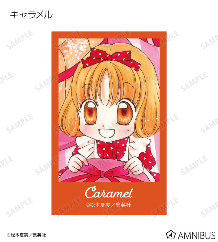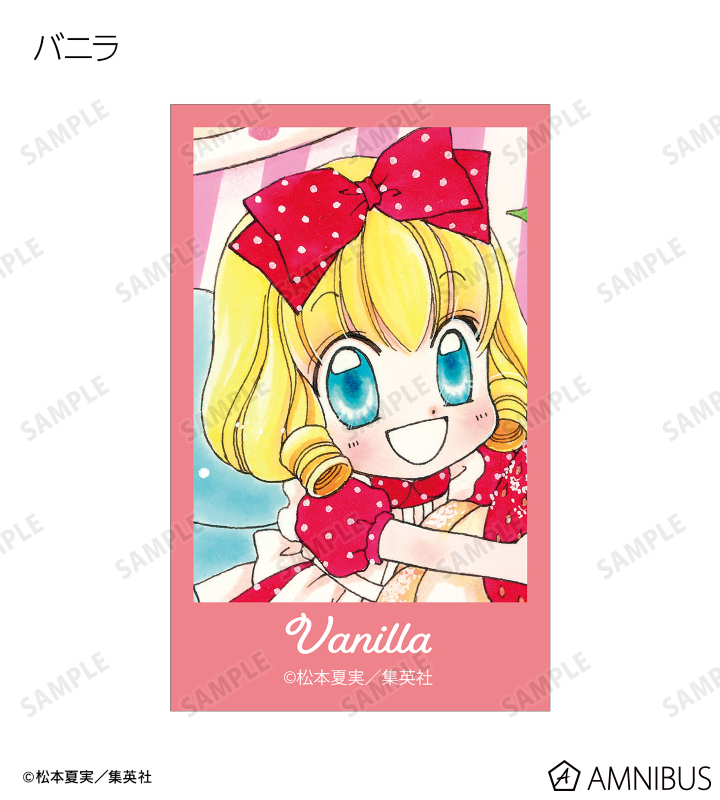 天野いちご、樫野真、安堂千乃介、花房五月、バニラ、ショコラ、キャラメル、カフェの原作イラスト、原作コマイラストをインスタントカメラ風のイラストカードに仕上げました。