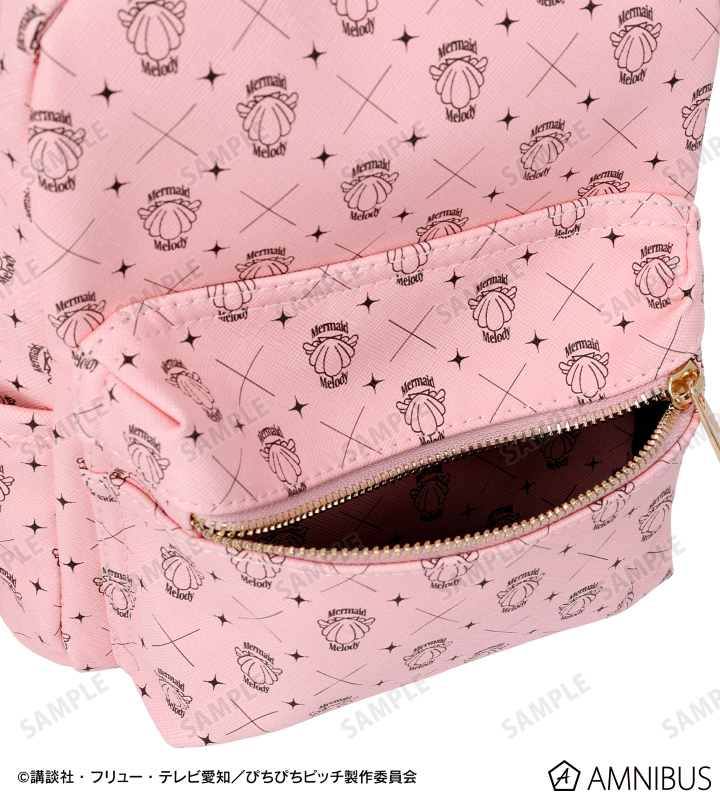 アクアピッチのモチーフを、作品らしさのあるピンクの生地に散りばめたデザインに仕上げました。