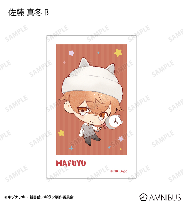 さといさんの描き下ろしイラストの佐藤 真冬、上ノ山 立夏、中山 春樹、梶 秋彦、鹿島 柊、八木 玄純、村田 雨月をイラストカードに仕上げました。