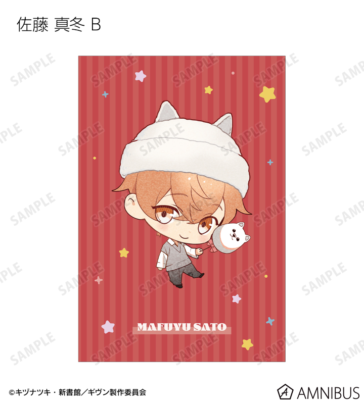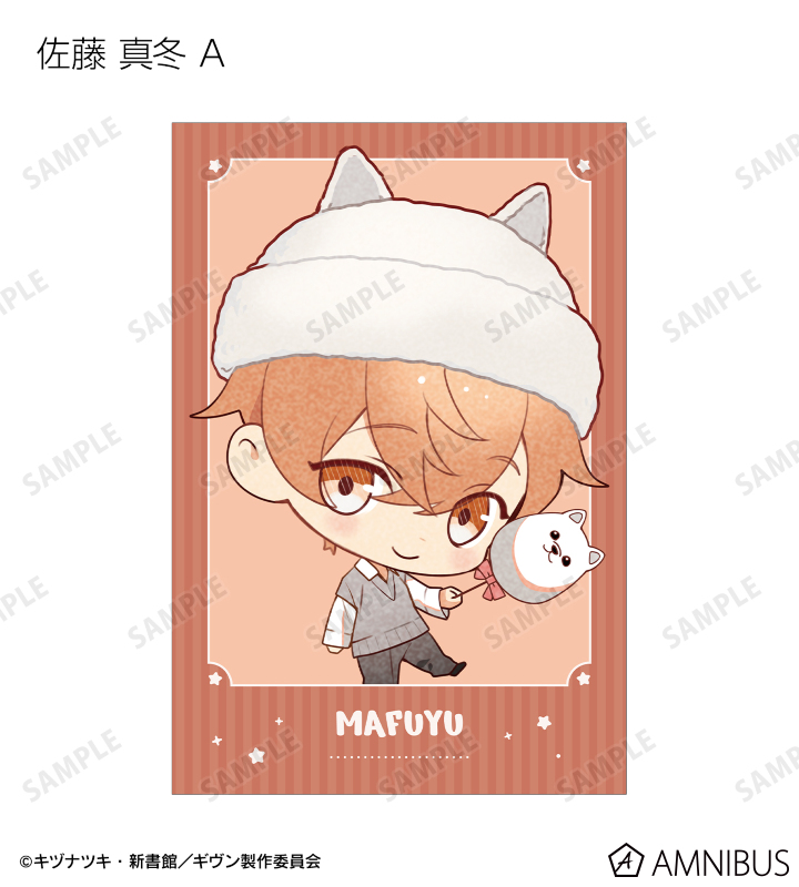 さといさんの描き下ろしイラストの佐藤 真冬、上ノ山 立夏、中山 春樹、梶 秋彦、鹿島 柊、八木 玄純、村田 雨月をポストカードに仕上げました。