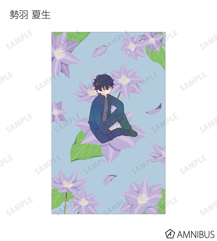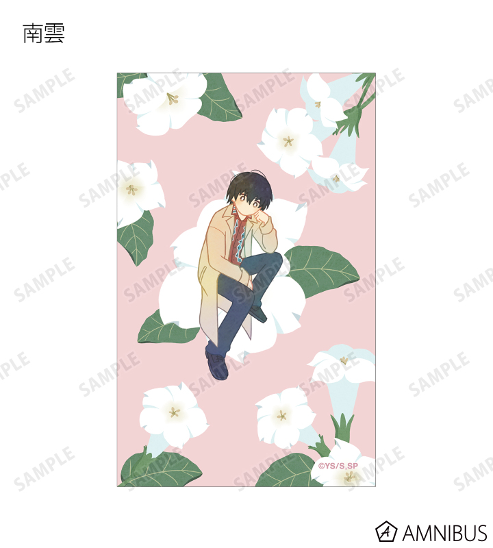 坂本 太郎、朝倉 シン、陸 少糖、眞霜 平助、ピースケ、南雲、神々廻、大佛、勢羽 夏生、陸 無糖のイラストをボタニカルデザインに落とし込んで繊細なタッチで新たに描き起こし、イラストカードに仕上げました。