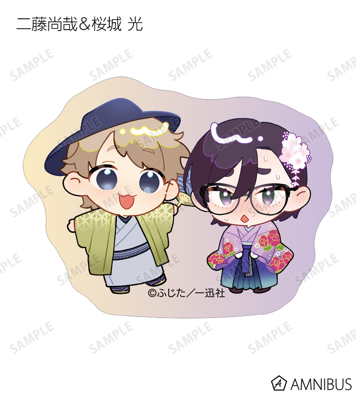 ふじた先生 描き下ろし 集合 10周年記念和装 ちびキャラver. フレークシール