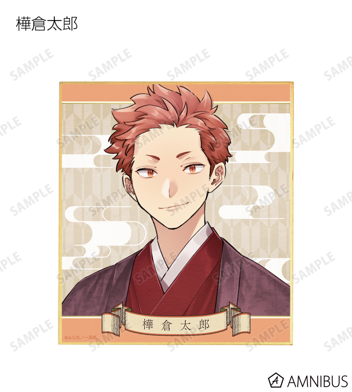 ふじた先生の描き下ろしの10周年記キービジュアル、桃瀬成海、二藤宏嵩、小柳花子、樺倉太郎、二藤尚哉、桜城 光のイラストをミニ色紙に仕上げました。