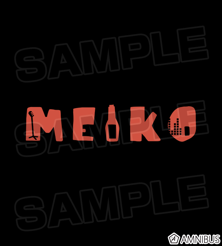 MEIKOの名前に衣装と酒瓶のモチーフを組み合わせたデザインをプリントしました。