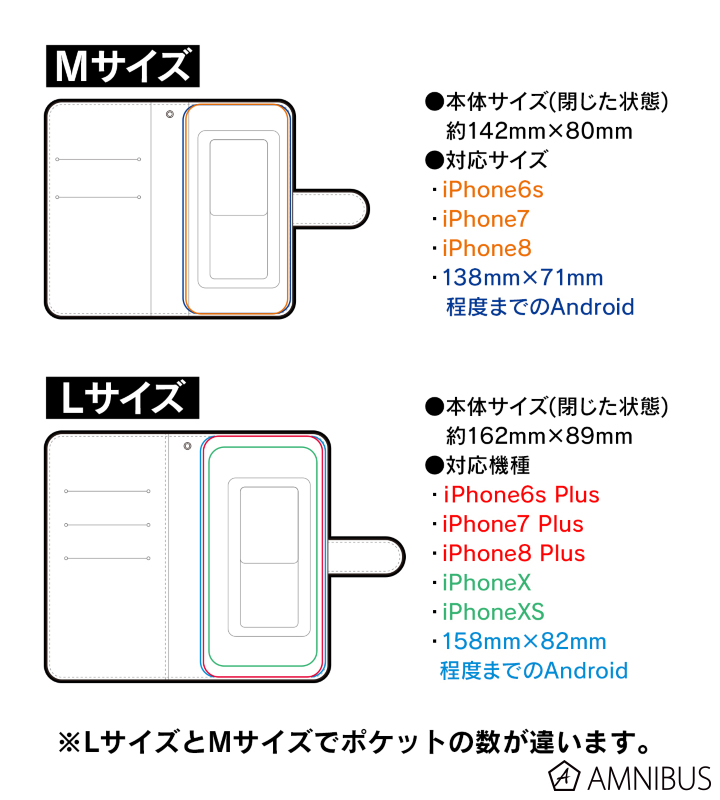 「Lサイズ」:(約)本体サイズ162mm×89mm(閉じた状態)
