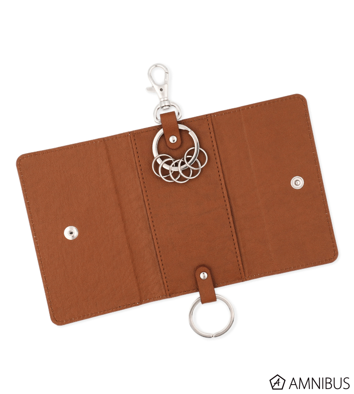大きいキーリングが2つと小さいキーリングが5つあり、カード収納のできるポケットもついたコンパクトで便利なアイテムです。