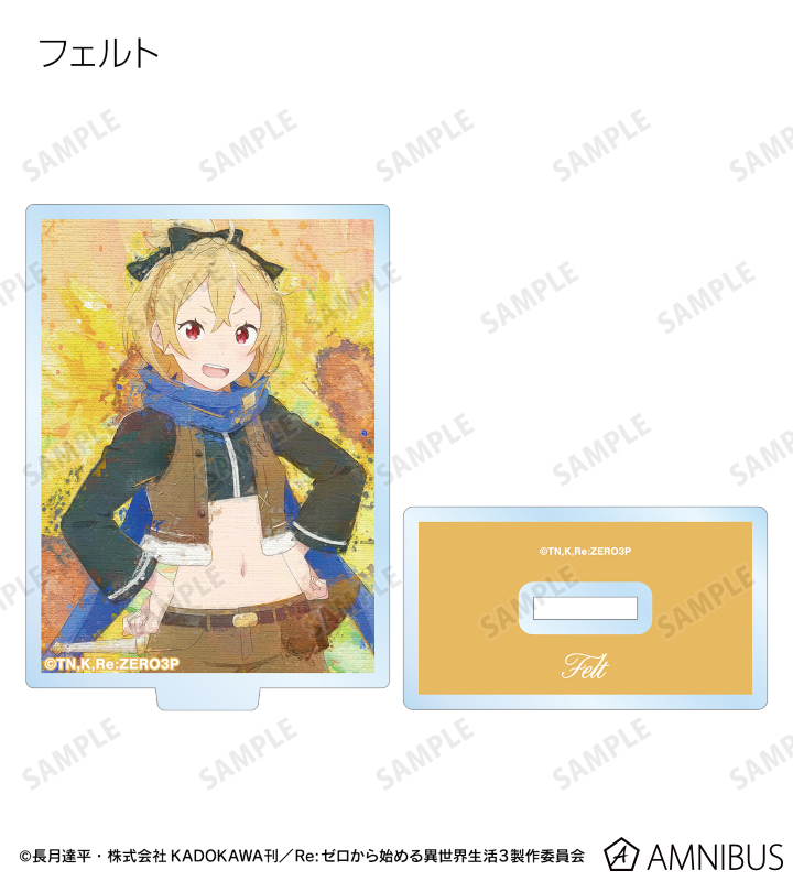 エミリア、レム、ラム、ベアトリス、フェルト、クルシュ・カルステン、アナスタシア・ホーシン、プリシラ・バーリエルのイラストを新たなタッチで魅力的に表現し、アクリルスタンドに仕上げました。