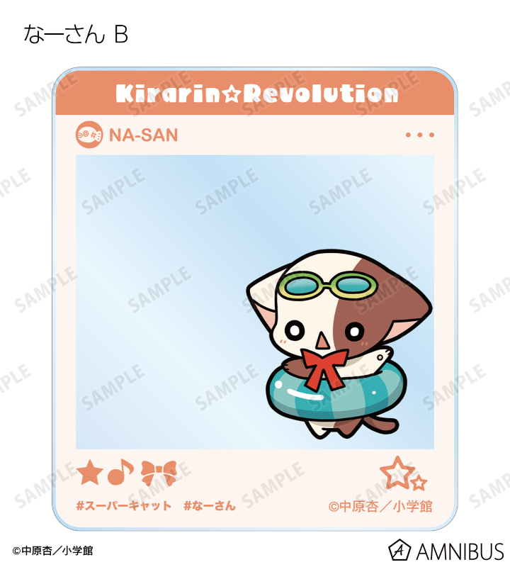 月島きらり、なーさん、風真宙人、日渡星司、なーやん、みゃ〜さん、カメさんの描き起こしちびキャライラストを、夏を感じられるようなポップなデザインにしてアクリルカードに仕上げました。