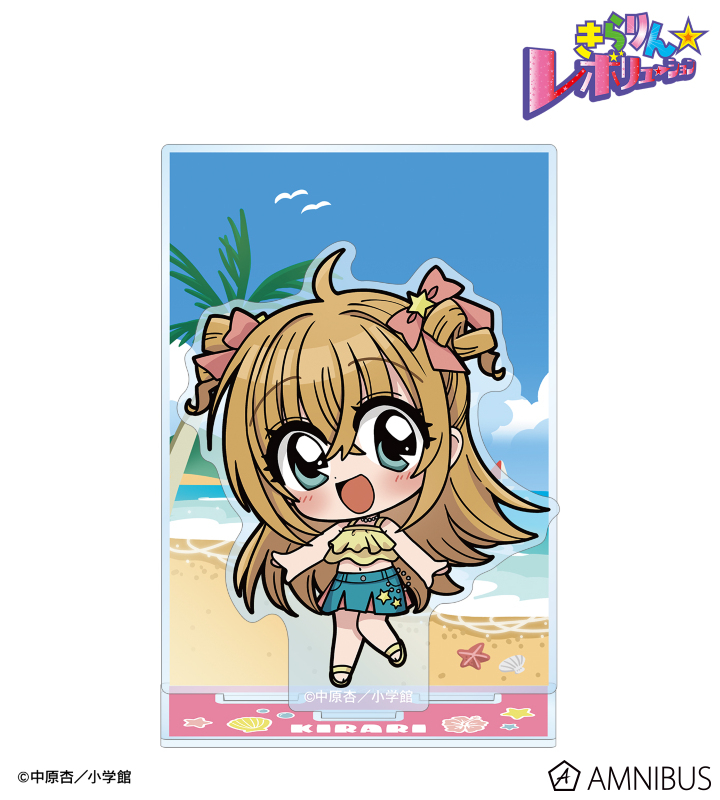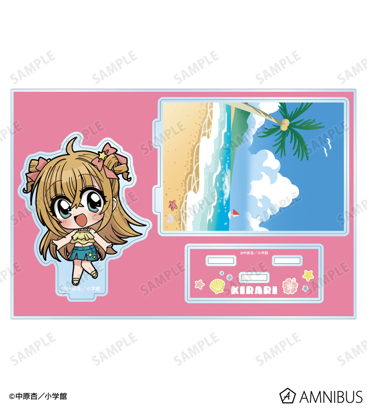 月島きらりの描き起こしちびキャライラストを、夏を感じられるようなポップなデザインにしてパーツ付きのBIGなアクリルスタンドに仕上げました。