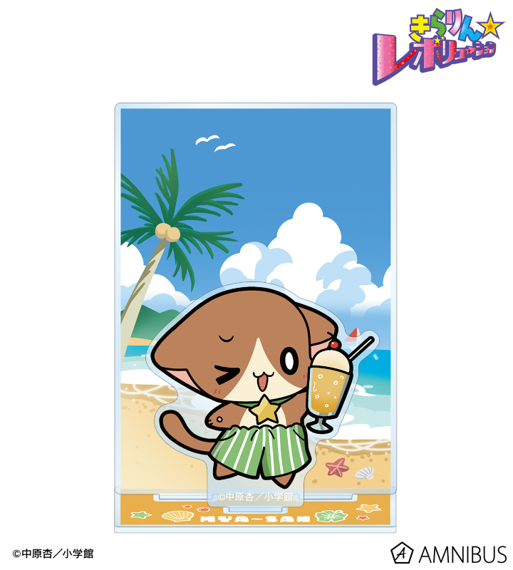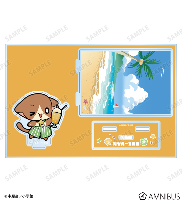 みゃ〜さんの描き起こしちびキャライラストを、夏を感じられるようなポップなデザインにしてパーツ付きのBIGなアクリルスタンドに仕上げました。