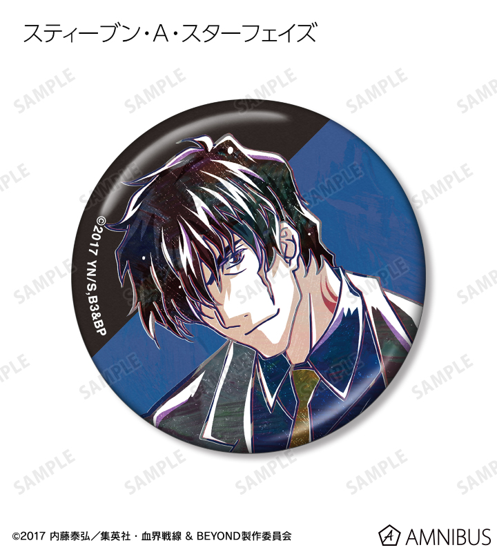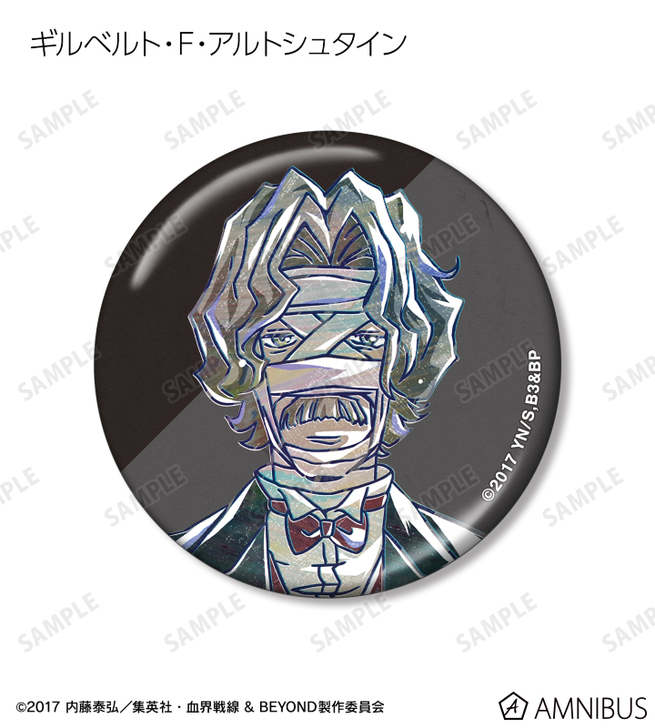クラウス・V・ラインヘルツ、レオナルド・ウォッチ、ザップ・レンフロ、スティーブン・A・スターフェイズ、チェイン・皇、ツェッド・オブライエン、K・K、ギルベルト・F・アルトシュタインのイラストを新たなタッチで魅力的に表現し、メタリック仕様の缶バッジに仕上げました。