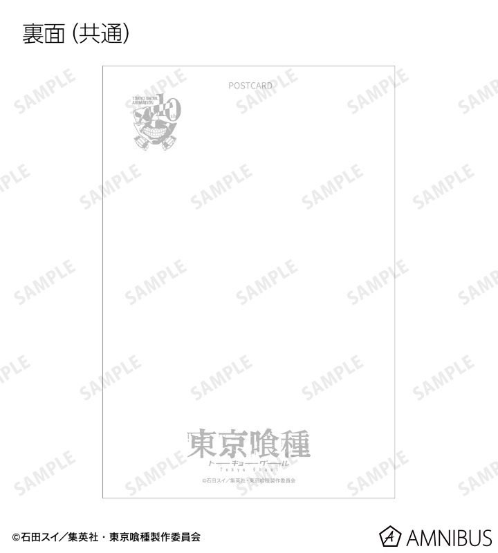金木 研、霧嶋董香、月山 習、ウタ、霧嶋絢都、鈴屋什造の描き下ろしイラストを、ポストカード6枚セットに仕上げました。