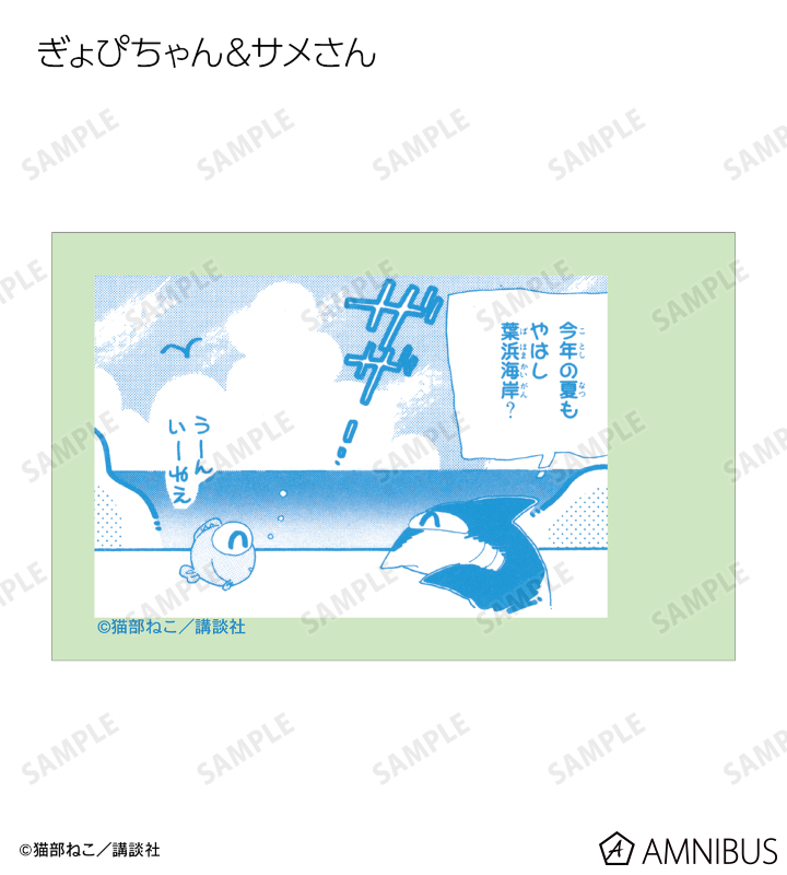 新装版3巻表紙イラスト、わぴこ、ぎょぴちゃん、サメさんの印象的な原作コマイラストをイラストカード3枚セットに仕上げました。