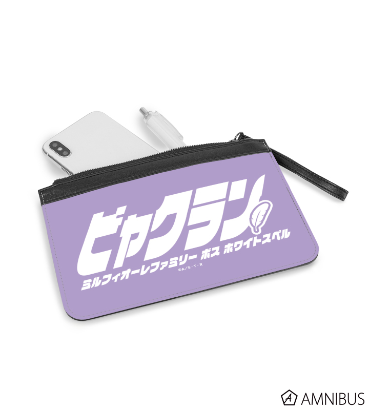 白蘭のイメージモチーフと肩書きを、PUレザーフラットポーチに仕上げました。