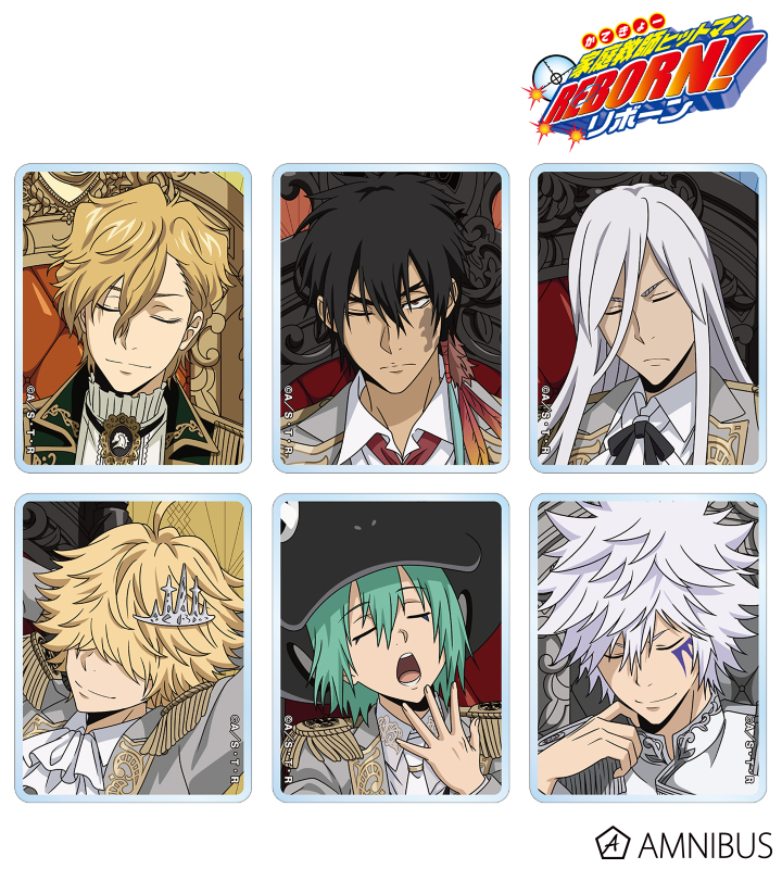 ディーノ(10年後)、XANXUS(10年後)、スペルビ・スクアーロ(10年後)、ベルフェゴール(10年後)、フラン、白蘭の描き下ろしイラストをアクリルマスコットに仕上げました。